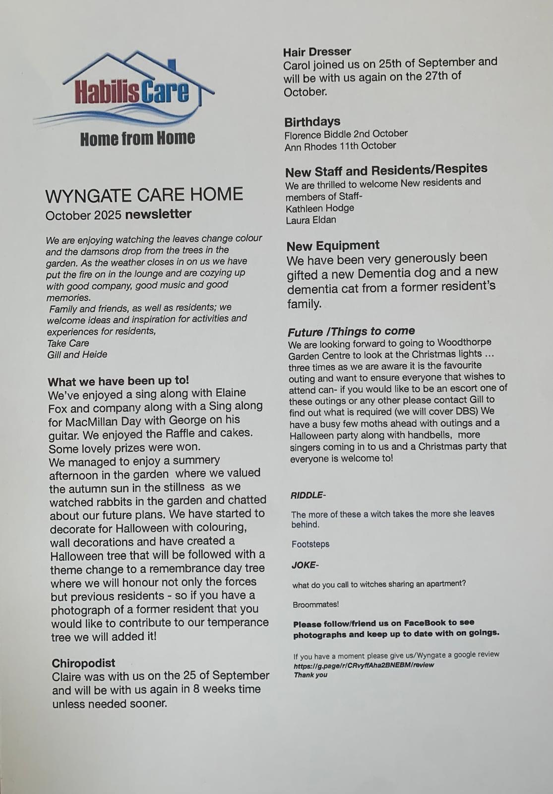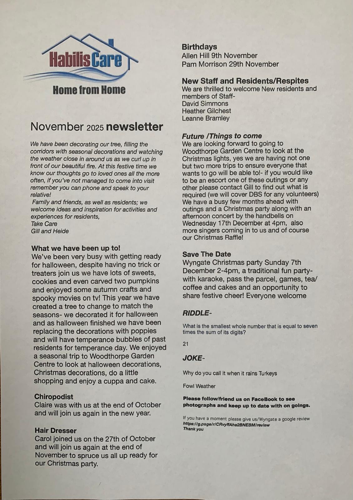 Contact our care home in Mablethorpe here to enquire about arranging a care assessment, or to find out more about our facilities.